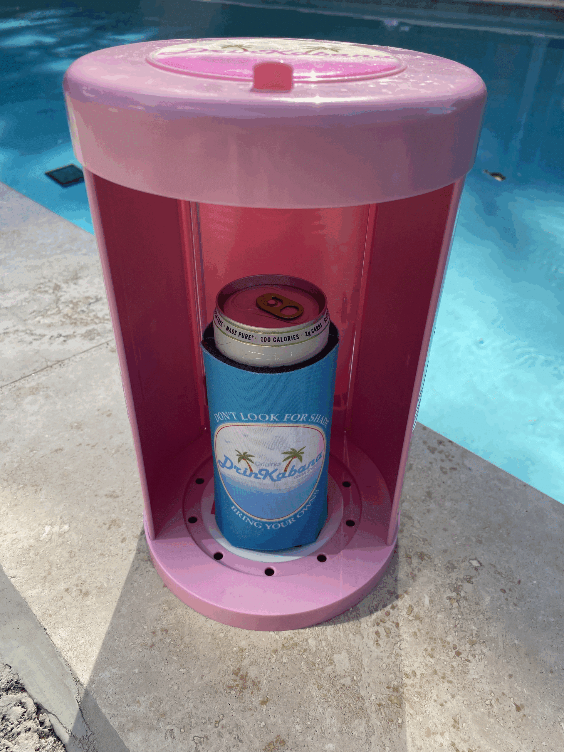The DrinKabana shades and protects beverages of all types from the sun 12-, 16- and 24-ounce bottles & cans, margarita & wine glasses, large insulated tumblers, wide-bottom mugs, and more!