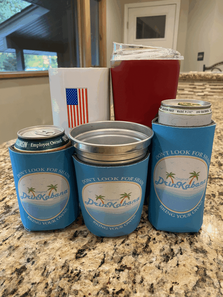 The DrinKabana shades and protects beverages of all types from the sun – 12- and 16-ounce bottles & cans, margarita & wine glasses, large insulated tumblers, wide-bottom mugs, and more!